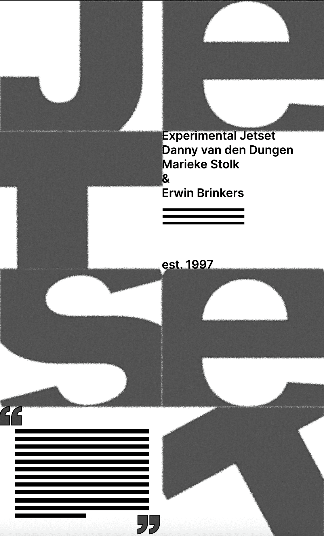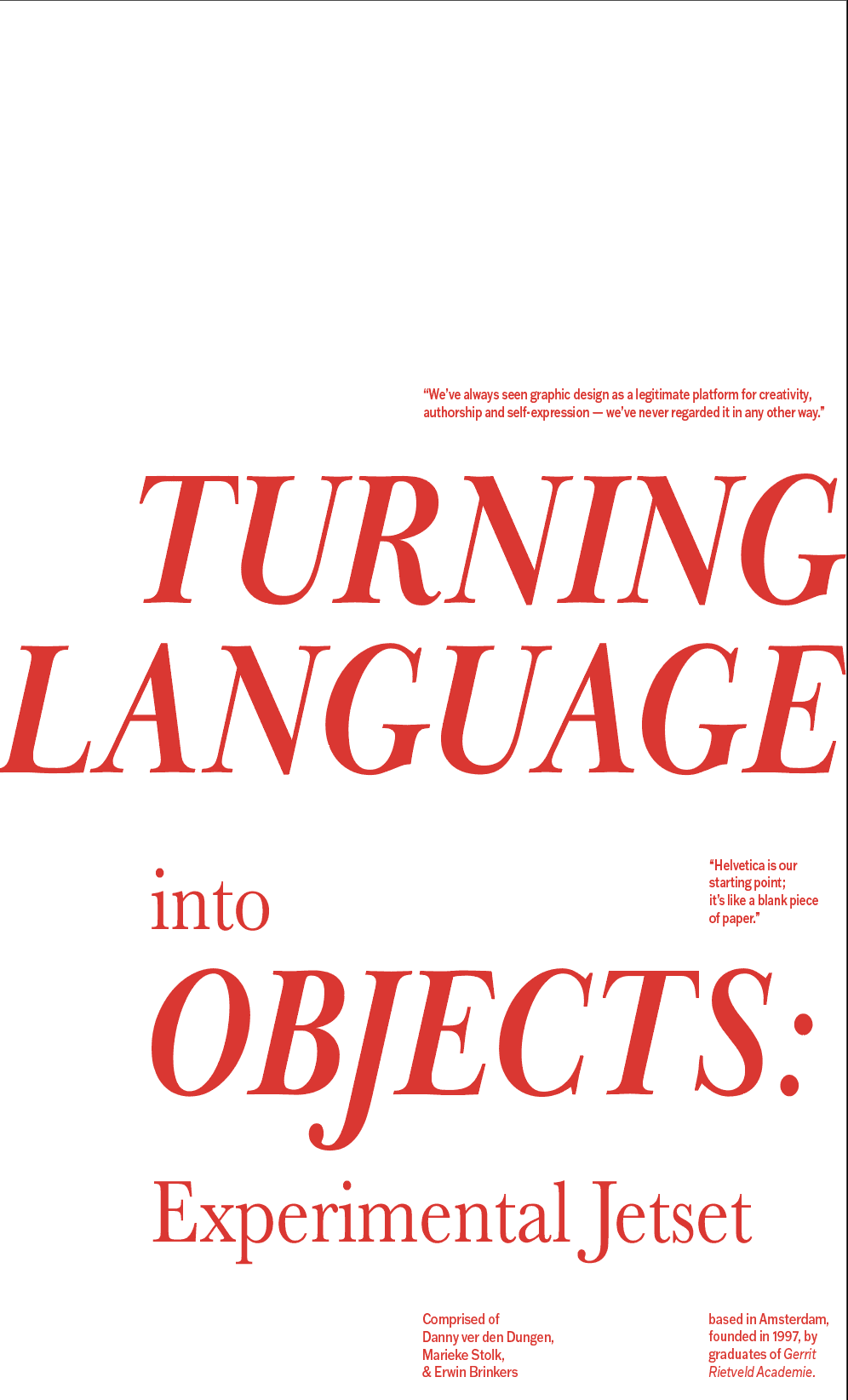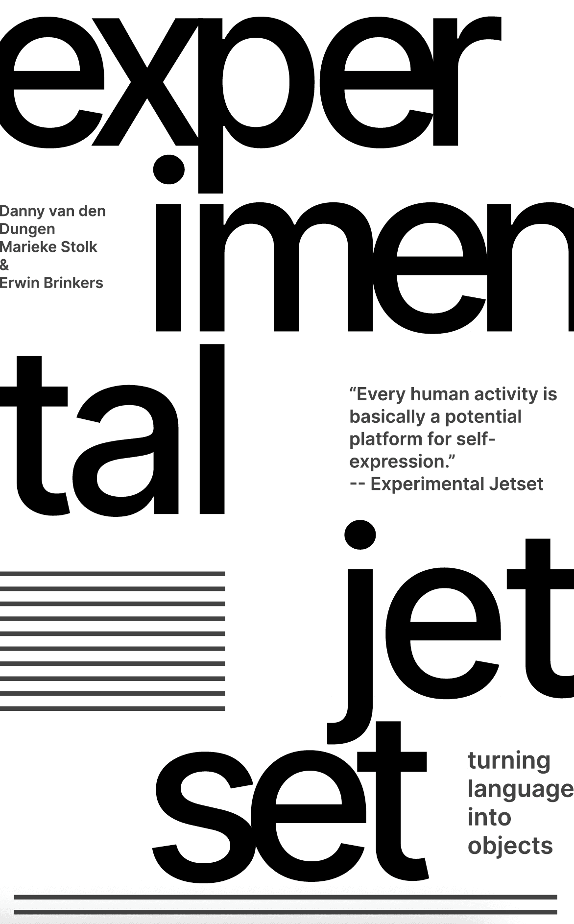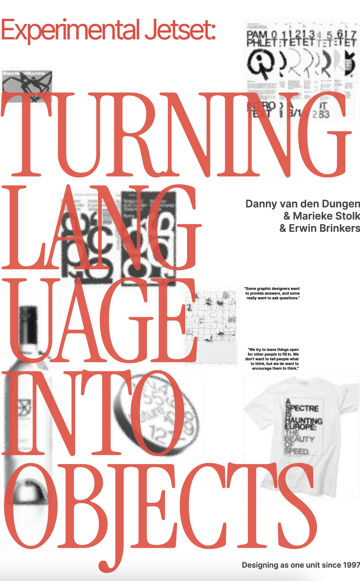 Experimental Jetset emphasizes in multiple interviews on their appreciation of the material nature of print beyond just a 2D medium (as seen in the "turning language into objects" quote on their site).
